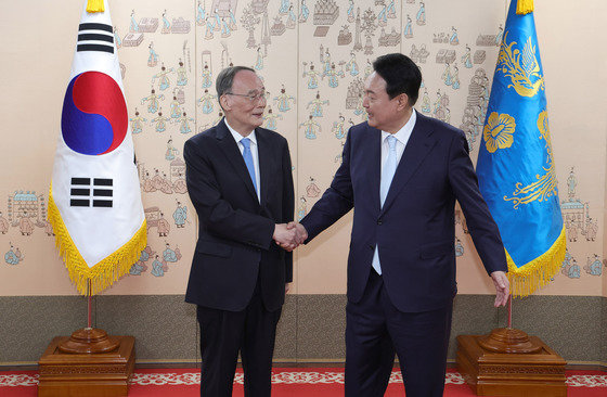 왕 부주석은 전날윤 대통령과 만나 시진핑 국가주석의 친서를 전달하고 양국 관계와 관련해 전략적 소통 강화, 발전 연계, 제3국 시장 협력 강화 등 5가지 방안을 제시했다.