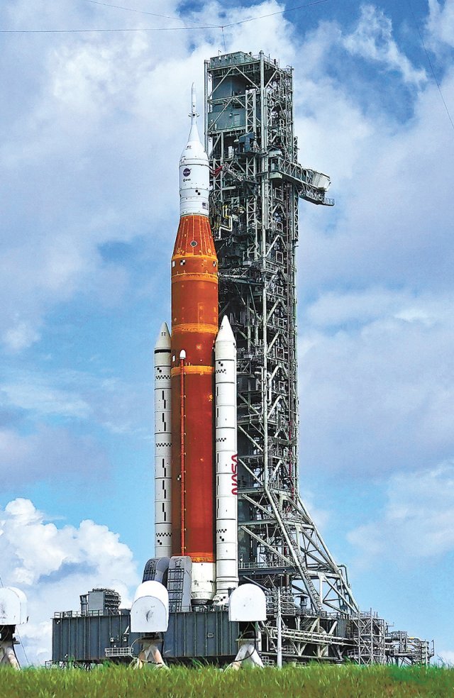 SLS는 높이 98m, 무기 2600t으로 아폴로 우주선을 실었던 ‘새턴V’보다 작지만 추력은 15% 강화된 나사가 개발한 최대 규모의 신형 로켓이다. 이번 발사에선 실제 사람 대신에 우주비행사의 인체 조직과 같은 물질로 만든 마네킹을 캡슐 ‘오리온’에 실어 42일간 달 궤도를 탐사한 뒤 지구로 귀환할 예정이었다.