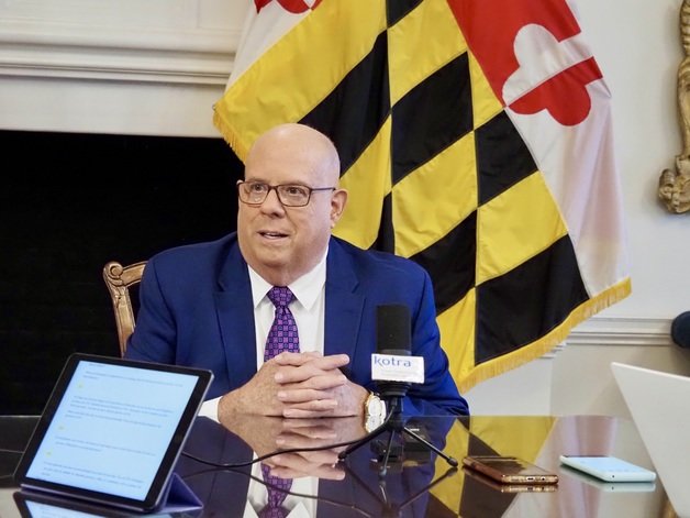 래리 호건 메릴랜드 주지사가 방한을 앞두고 지난 9일(현지시간) 주정부 청사에서 코트라 및 워싱턴특파원단과 인터뷰를 갖고 있다. 사진은 워싱턴특파원단 제공.