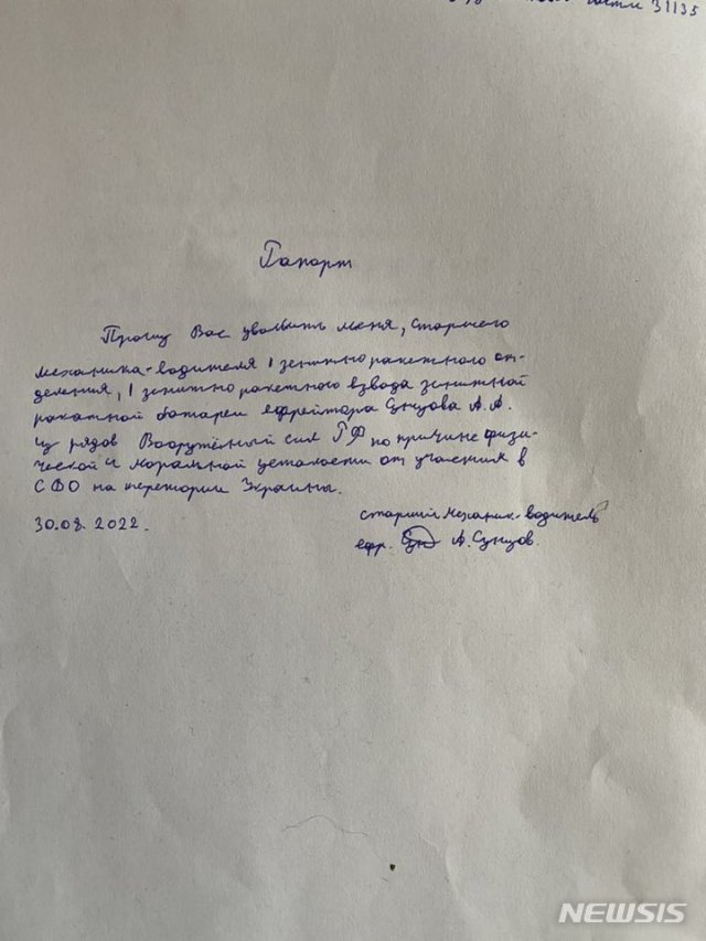 러시아 병사들이 우크라이나 북부 요충지 이지움에서 퇴각하기 열흘 전 더이상 싸울 수 없다며 상부에 강제 전역을 호소하는 친필 편지를 작성했었다고 워싱턴포스트(WP)가 해당 편지 초고를 입수해 15일(현지시간) 보도했다.