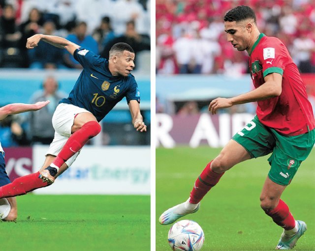 프랑스는 이번 대회서 11골을 넣어 4강 진출팀 중 최강의 공격력을 자랑한다. 모로코는 이번 대회 8강전까지 5경기에서 한 골만 내주는 ‘방탄 수비’를 보여줬는데 이 한 골마저도 자책골이다. 상대 팀이 모로코 골문을 뚫은 적은 아직 없다. 그 중심에 음바페와 하키미가 있다. 음바페는 이번 대회 5경기에서 유효 슈팅 10개(최다 1위)를 남겼고, 하키미가 버티는 모로코 수비라인은 5경기를 치르는 동안 상대 공격을 유효 슈팅 10개로 막았다.