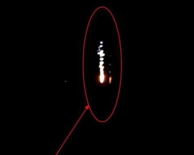 18일 북한이 발사한 미사일로 보이는 물체가 일본 홋카이도 서쪽 바다에 낙하하는 장면. 밤하늘에 미사일 불꽃으로 추정되는 불빛이 선명하게 포착됐다. 출처 일본 방위성