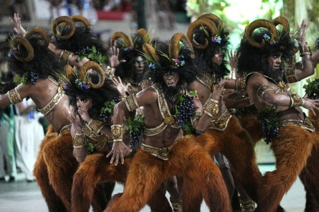 21일 브라질 리우데자네이루 삼보드로무(삼바드롬)에서 열린 지구촌 최대 축제 ‘삼바 카니발’에서 머리에 뿔을 단 화려한 복장의 삼바 무용수들이 퍼포먼스를 펼치고 있다. 신종 코로나바이러스 감염증(코로나19) 이후 3년 만에 재개된 이번 축제에는 약 1억 명이 참가할 것으로 보인다. 카니발은 17일 개막해 22일까지 6일간 진행된다.