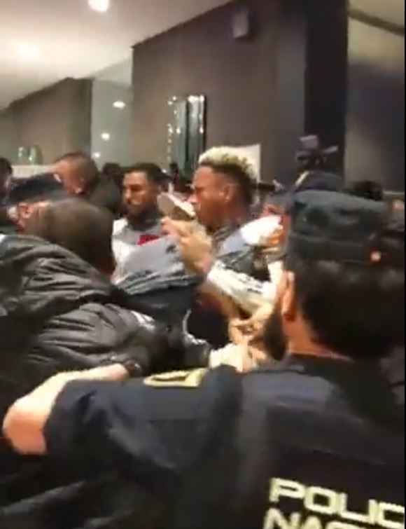 다툼은 선수단이 호텔 주위에 몰려든 팬들을 맞이하는 과정에서 시작됐다. 현장을 통제하려는 경찰과 시비가 벌어진 것으로 알려졌다.