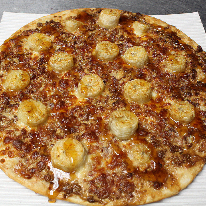 12일(이하 현지시간) 영국 데일리미러에 따르면 미국 오하이오주 신시내티에 있는 로스코스 피자가게는 ‘특별한 토핑’이 올라가 있는 ‘엘비스 피자’를 판매하고 있다. 엘비스 피자에는 바나나가 ‘메인 토핑’으로 올라가고, 토마토소스 대신 땅콩버터가 쓰인다.