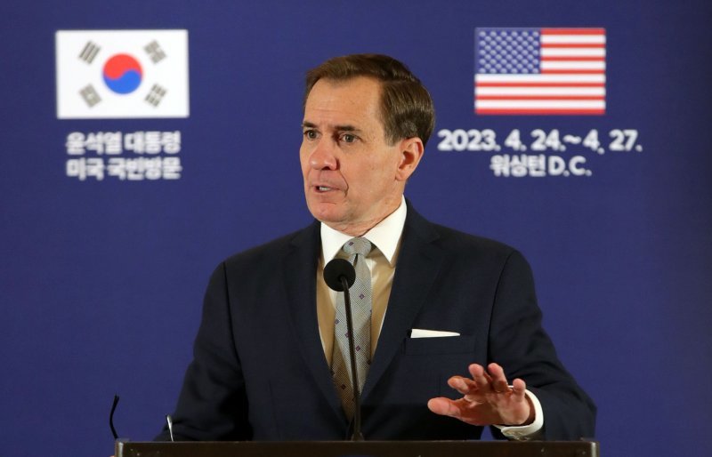 존 커비 미국 백악관 국가안보회의(NSC) 전략소통조정관이 25일(현지시간) 워싱턴DC 프레스센터에서 한미 정상회담 관련 주요 행사에 대해 브리핑하고 있다. 2023.04.25. 뉴시스
