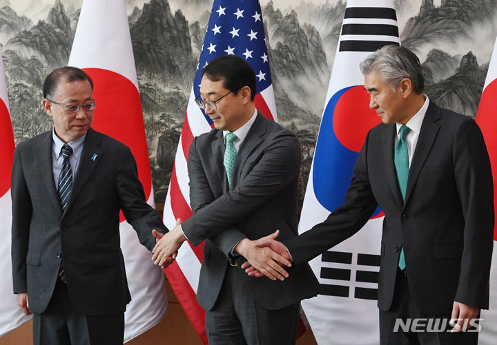 국무부는 17일(현지시간) 보도자료를 통해 성김 대북특별대표가 김건 한국 외교부 한반도평화교섭본부장, 후나코시 다케히로 일본 외무성 아시아대양주국장과 만난다고 밝혔다. 세 사람은 지난 4월 서울에서도 회담했었다.