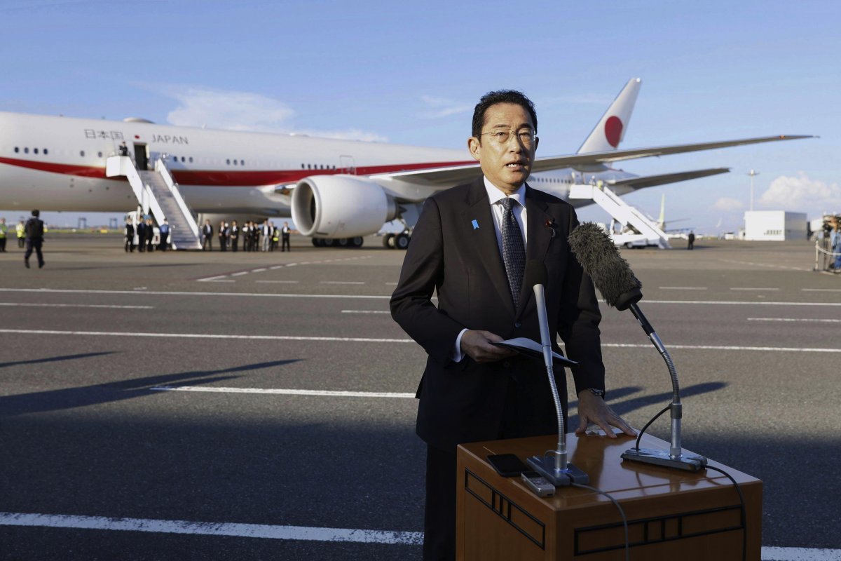 일본 도쿄 하네다공항에서 기자들의 질문에 답하고 있는 기시다 후미오 일본 총리. 뉴시스