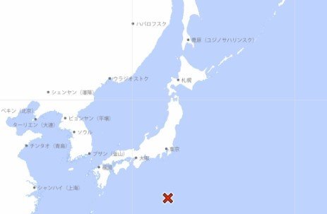 6일 오전 10시31분쯤 일본 이즈제도 도리시마 인근 해역서 발생한 지진의 진앙지가 엑스자로 표기돼 있다. (출처 : 일본 기상청) 2023.10.06