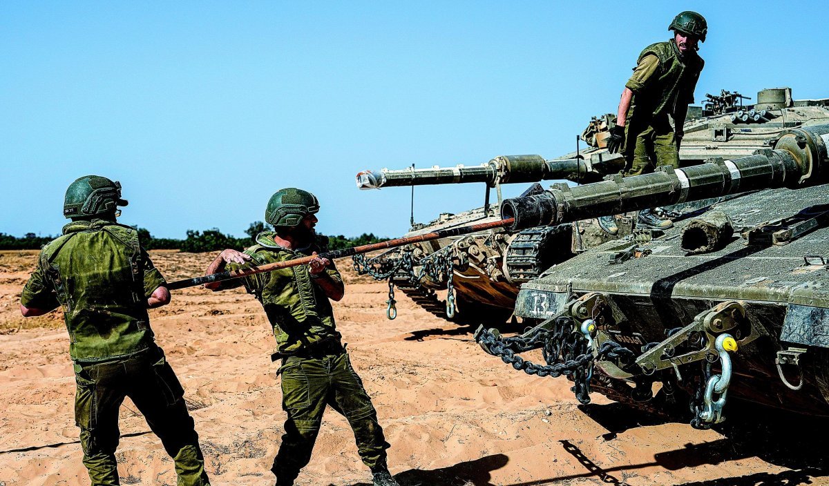 이스라엘의 팔레스타인 가자지구 최남단 라파에 대한 지상작전 돌입이 임박한 가운데 5일 이스라엘 군인들이 가자 남쪽에서 탱크의