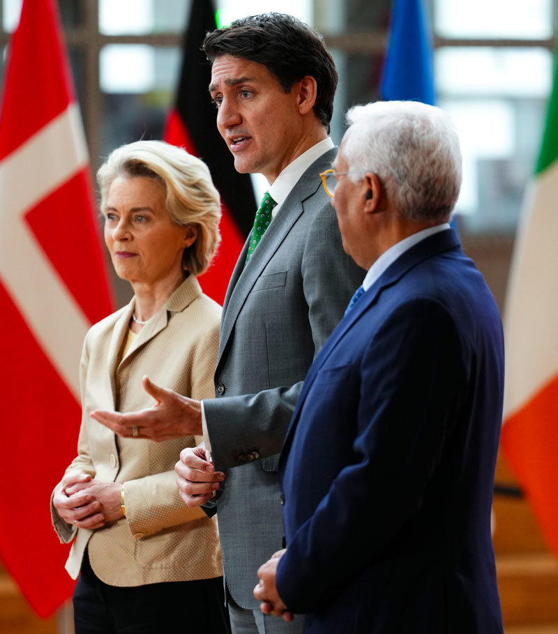 12일 트뤼도 총리는 EU의 우르줄라 폰데어라이엔 집행위원장과 안토니우 코스타 정상회의 상임의장을 EU 본부가 있는 벨기에 브뤼셀에서 만났다. EU는 세 인사의 회동 뒤 보도자료를 통해 EU와 캐나다가 ‘EU―캐나다 포괄적경제무역협정(CETA)’의 중요성을 재확인했고, 통상 확대 및 다각화 노력을 기울이기로 했다고 밝혔다. 이어 “EU와 캐나다는 주권과 영토 보전, 국경 불가침이 국제법의 근본적인 원칙이라는 점을 계속해서 지지할 것”이라고 강조했다.