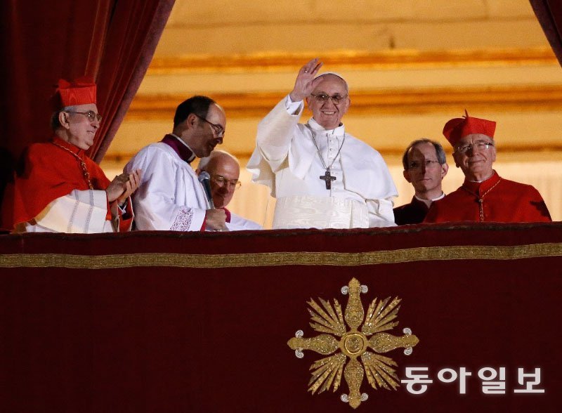 2013년 3월 새 교황에 선출된 프란치스코 교황(가운데)이 성 베드로 대성당의 발코니에 나와 신자들을 향해 손을 흔들고 있다. 교황은 “다른 사람을 위해, 세계를 위해, 나를 위해 기도해 달라”고 말했다. 바티칸=EPA 연합뉴스 동아일보 DB 이탈리아에서 아르헨티나로 이주한 철도 노동자 가정에서 1935년 태어난 교황은 1958년 사제서품을 받은 뒤에도 아르헨티나 내부의 빈부 격차에 대해 진보적 메시지를 지속적으로 내 왔다. 교황 즉위 전에는 특히 라틴아메리카 주교 모임에서 “엄청난 발전에도 불구하고 우리는 지금 세계에서 가장 불평등한 지역에서 살고 있다”며 “가난한 사람들이 인간다운 삶을 살아갈 가능성이 제한되고 있다”고 주장했다. 교황 즉위 직후에도 고국 신자들을 향해 즉위 미사에 오는 대신 그 비용을 자선단체에 기부해달라는 메시지를 내놨다.