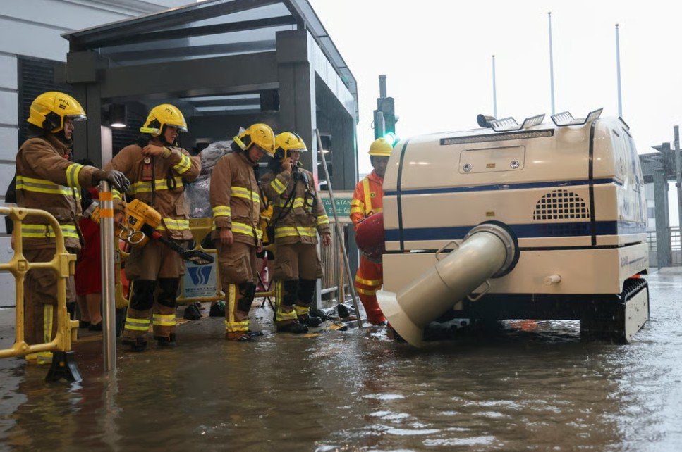 홍콩 당국은 이날 최소 24개 침수 지역에 ‘이동식 강력 펌핑 로봇’ 3대를 배치했다.