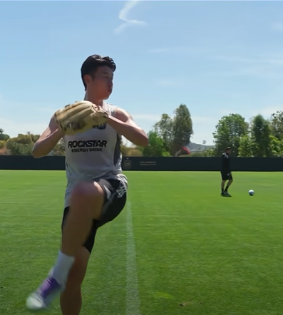 손흥민의 미국프로야구 메이저리그(MLB) 시구를 위한 연습 영상이 공개됐다.