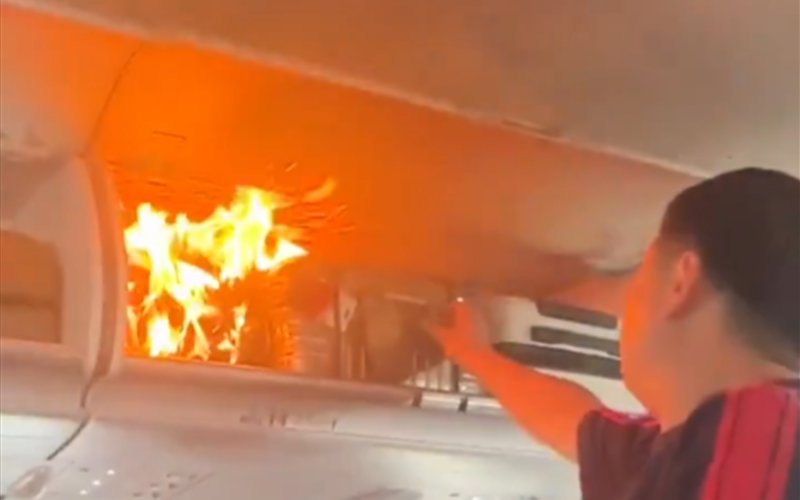 중국국제항공(에어차이나) 여객기가 18일 인천국제공항으로 가던 중 기내 수하물 화재로 상하이에 비상 착륙했다고 AFP 통신이 보도했다. (상하이데일리 소셜미디어 엑스) 뉴스1 당시 상황이 담긴 영상이 SNS에 확산했다. 영상을 보면 기내 수하물 선반에서 불길이 치솟자 승객들이 비명을 지르는 모습이다. 승무원들은 신속히 진화에 나섰다.