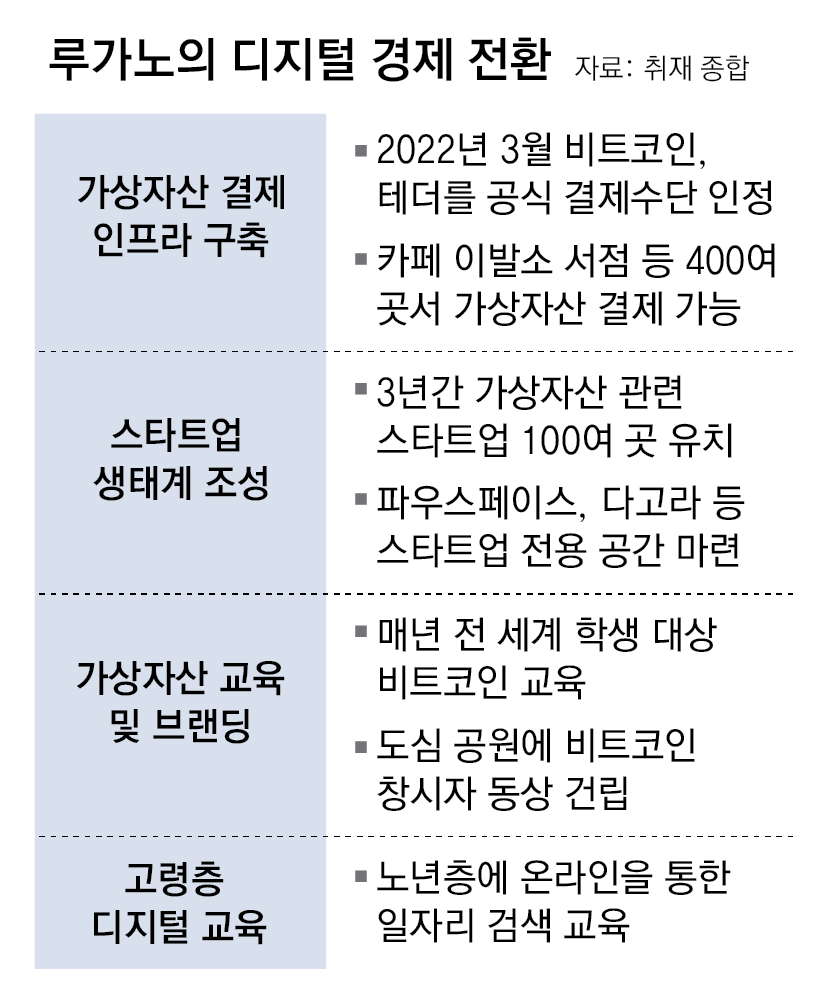 시는 가상자산 스타트업을 위해 과거 PB 업무가 이뤄지던 은행 건물을 파우스페이스로도 재탄생시켰다. 또 매년 전 세계에서 학생들을 초청해 비트코인 교육을 실시했다. 지난해 플랜B 여름학교에는 29개국 140명이 참가했고, 상당수가 루가노에 있는 가상자산 관련 스타트업에 취업했다.