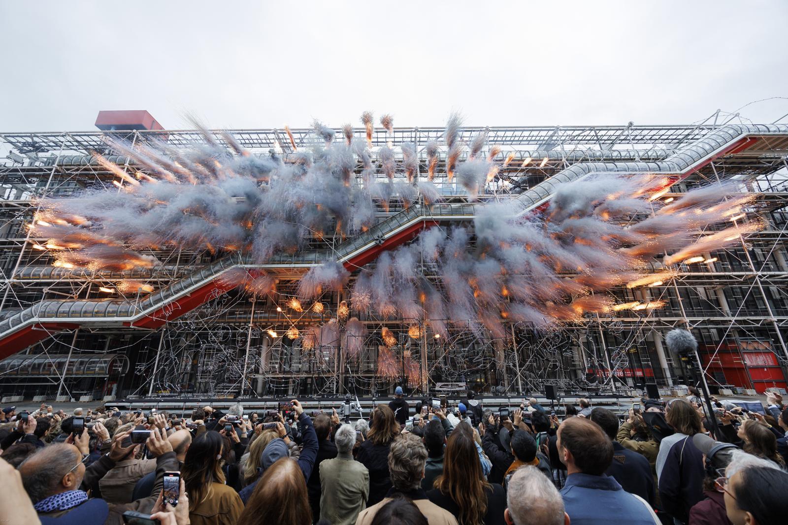 22일 프랑스 파리의 대표 복합 문화시설 퐁피두센터에서 선보인 불꽃놀이 공연. 미술관, 공공도서관, 극장 등을 갖춘 이곳은 철골 구조물이 외부에 그대로 노출된 독특한 디자인으로 유명하다. 전면 보수 공사를 위해 이날부터 최소 5년간 문을 닫기로 했다.