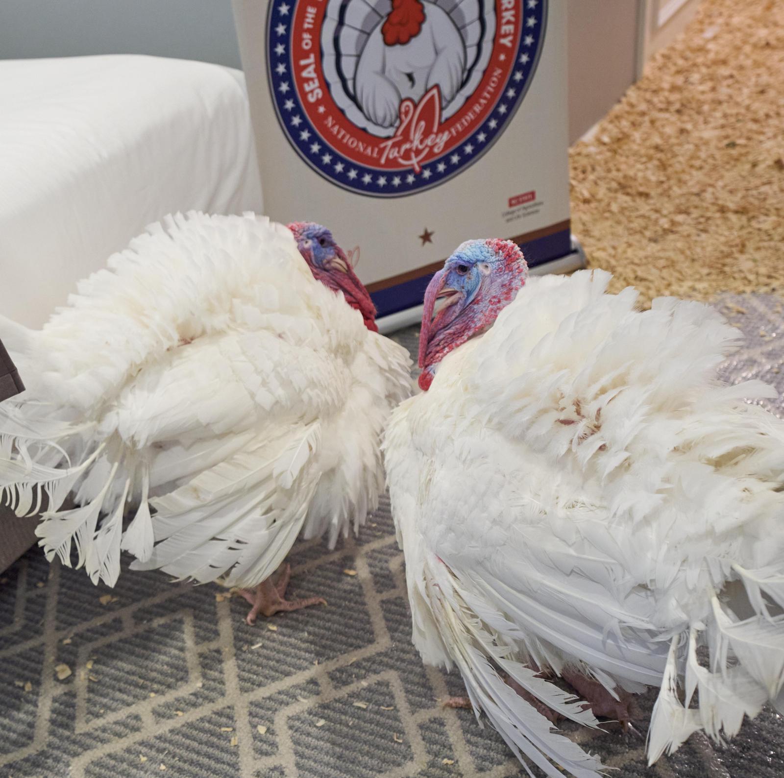 같은 날 대통령의 사면을 기다리는 칠면조 ‘와들’과 ‘고블’이 워싱턴 윌러드 인터콘티넨털호텔의 ‘칠면조 객실’에 머물고 있다. 추수감사절에 대통령 사면을 받은 칠면조는 평생 식용으로 도축되지 않는다.