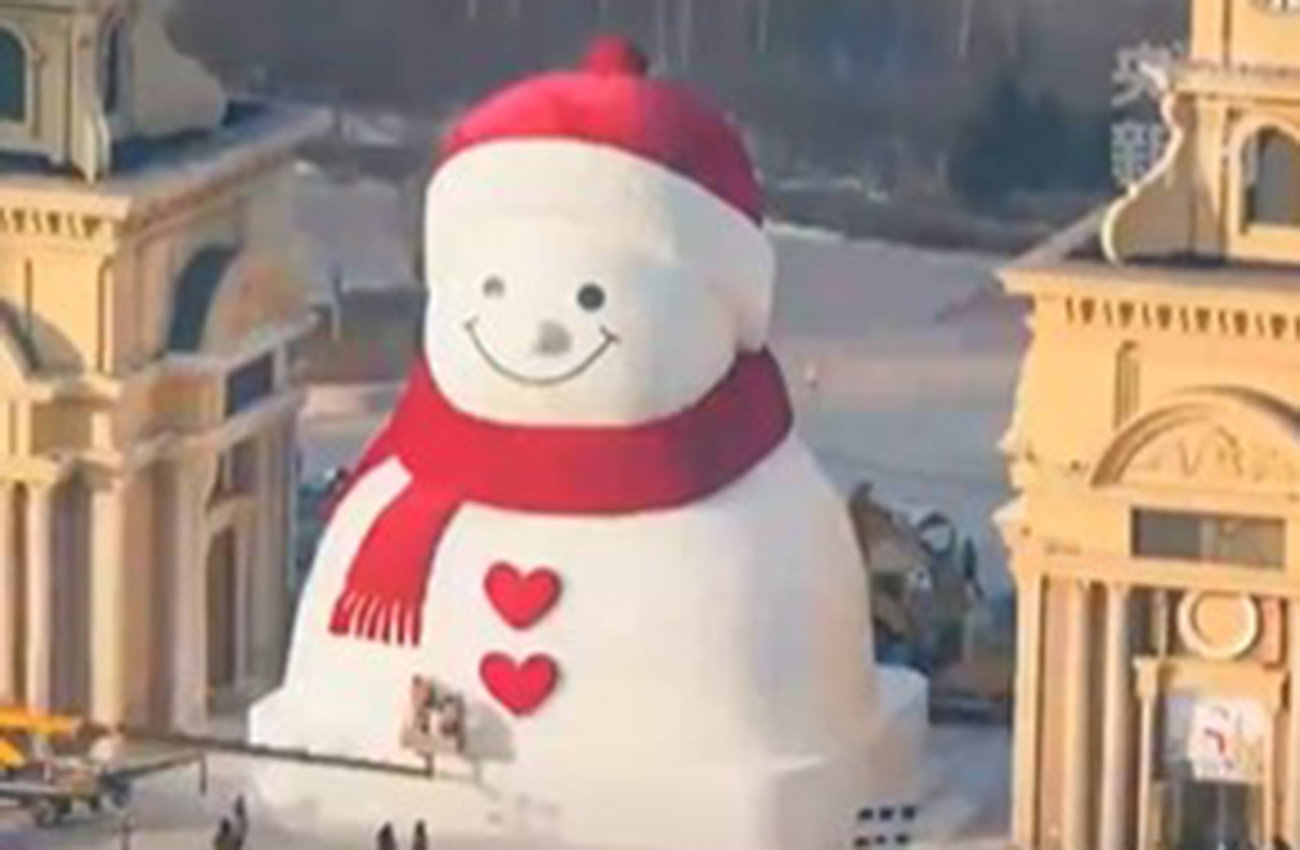 중국의 대표적인 겨울 관광지로 알려진 헤이룽장성 하얼빈시에 높이 약 19m에 달하는 초대형 눈사람이 등장해 화제를 모으고 있다.