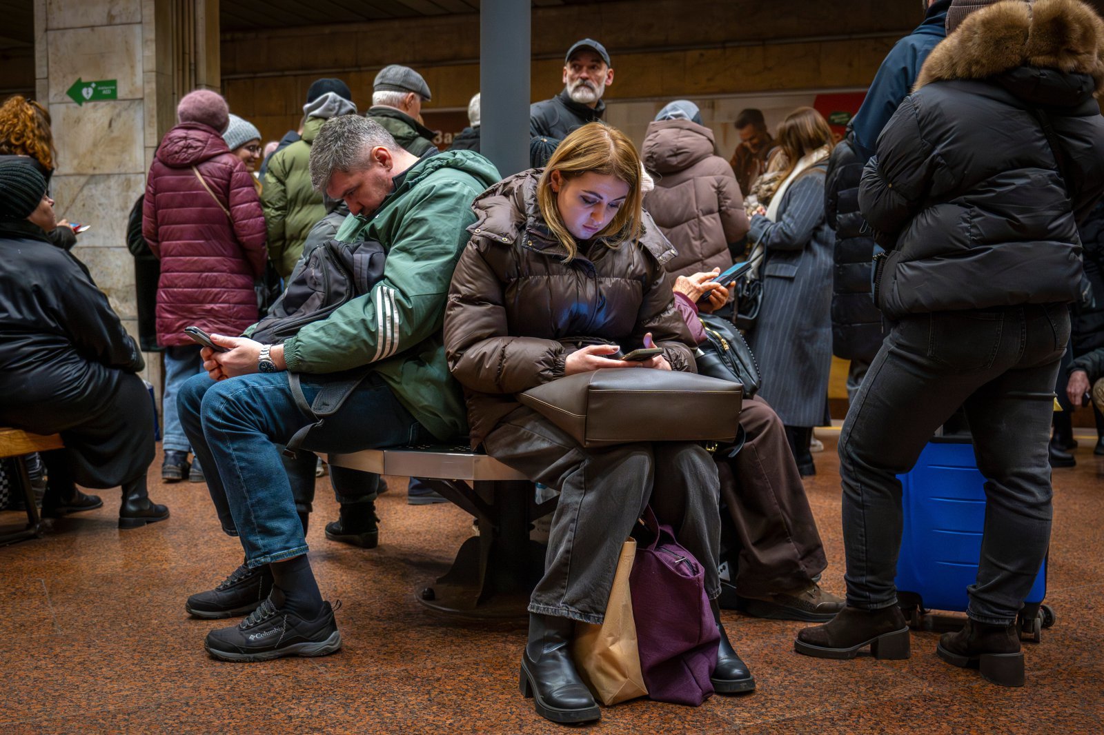 도널드 트럼프 미국 대통령과 볼로디미르 젤렌스키 우크라이나 대통령의 ‘종전’ 회담을 앞두고 러시아가 우크라이나 수도에 대규모 공습을 가했다. 사진은 지난 23일 러시아의 드론 공습으로 우크라이나 키이우에서 시민들이 방공호로 사용하는 지하철역으로 대피해 모여 있는 모습. 2025.12.27 키이우=AP 뉴시스
