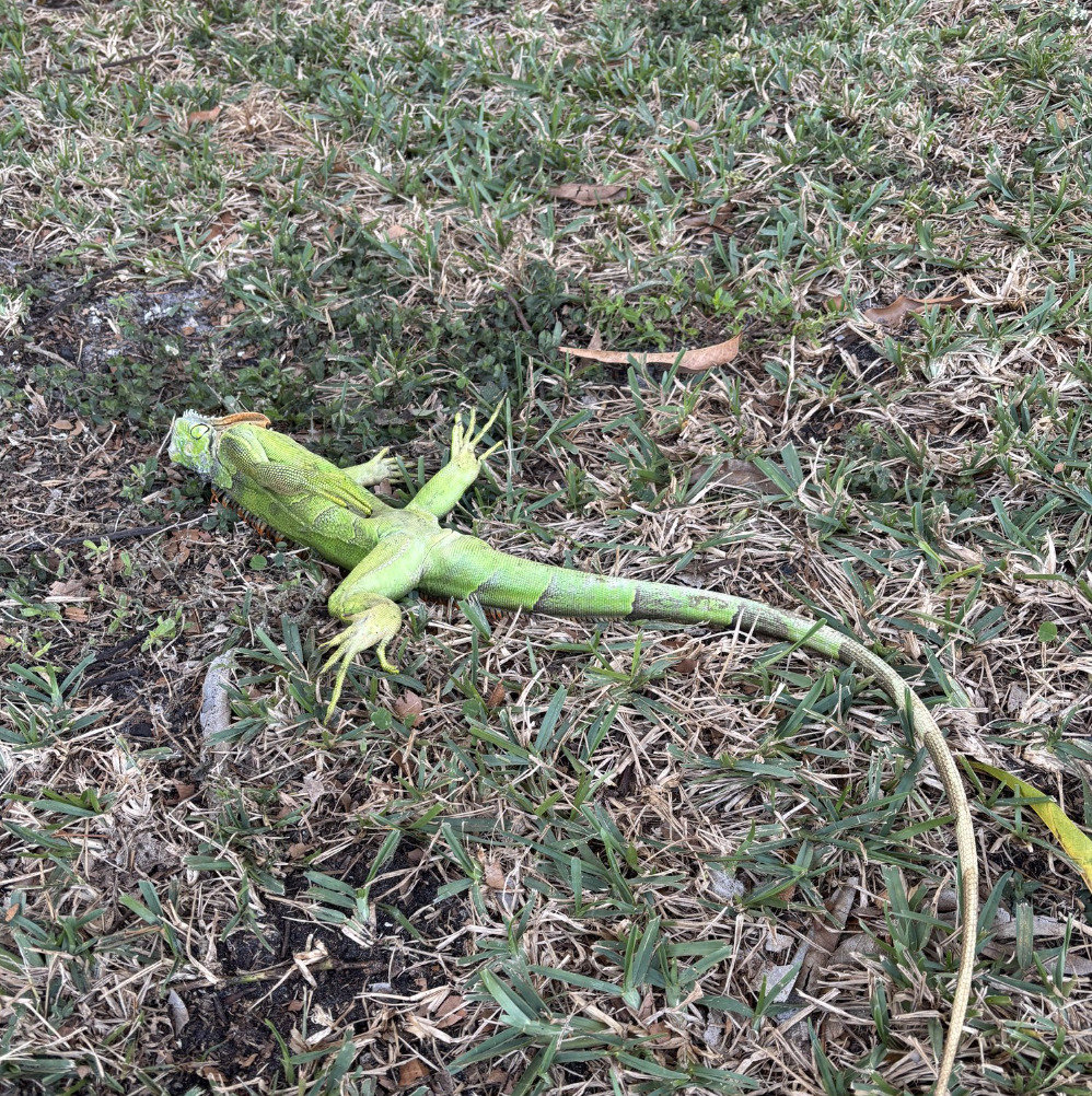 맷 데빗 기상학자는 자신의 엑스(X·전 트위터)에 포트마이어스의 한 잔디밭에 널브러진 초록색 이구아나 사진을 올리면서 “이구아나가 추위에 쓰러지고 있다”며 “죽은 것은 아니고, 단지 추위에 얼어붙어 기절한 것”이라고 적었다.