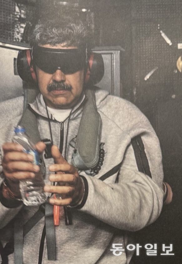 도널드 트럼프 미국 대통령이 3일(현지시간) 소셜미디어 ‘트루스소셜’을 통해 공개한 니콜라스 마두로 베네수엘라 대통령의 국외 이송 모습. 트럼프 대통령은 ‘니콜라스 마두로가 USS 이오지마 함에 탑승해 있다’라는 글과 함께 사진을 게재했다.도널드 트럼프 트루스소셜