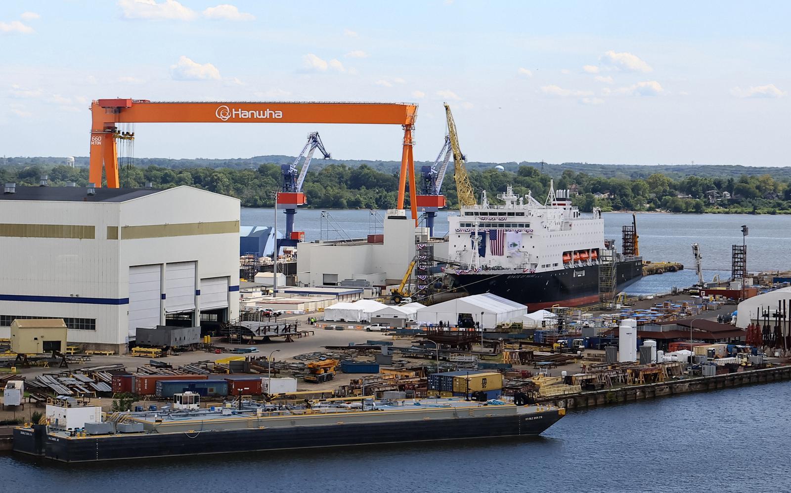 26일(현지 시간) 미국 펜실베이니아주 필라델피아의 한화 필리조선소에 미국 해양청 발주 국가안보 다목적선 ‘스테이트 오브 메인’호가 정박해 있다. 2025.08.27. [필라델피아=뉴시스]