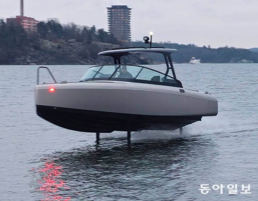 2014년 설립한 스웨덴 스타트업 칸델라는 세계 최초로 전기 수중익 선박을 개발하고 상용화한 기업이다. 기자가 칸델라가 개발한 2세대 전기 수중익 선박 ‘C-8’의 데모 버전에서 ‘수중익’ 기어를 위로 올리자 선체 앞부분부터 서서히 수면 위로 떠올랐다. 선체 뒤로 10m가량 길게 퍼지던 파도는 수중익 모드로 전환한 지 10초도 안 돼 잠잠해졌다.