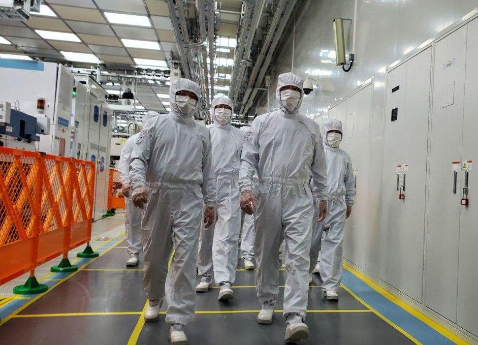 이재용 삼성전자 부회장이 18일 중국 산시성에 위치한 삼성전자 시안반도체 사업장을 찾아 생산 라인을 살펴보고 있다. (사진=삼성전자 제공) 2020.05.18.