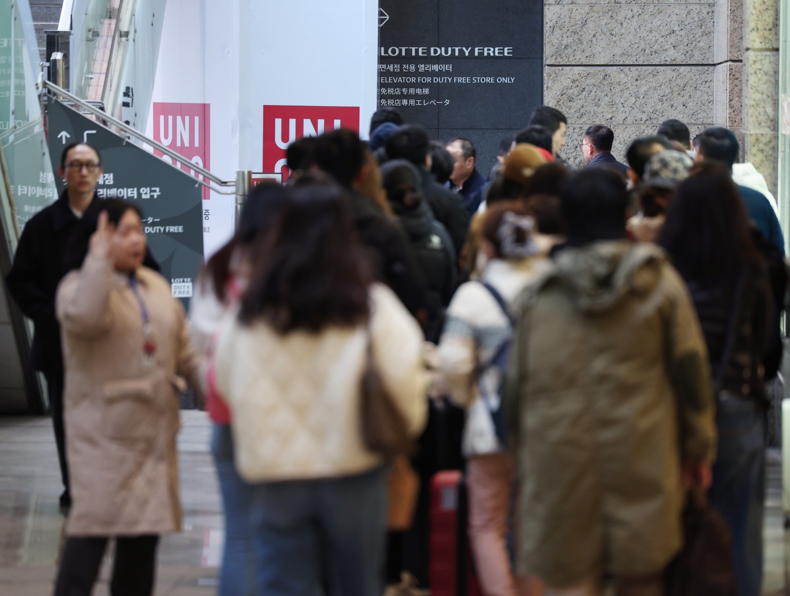 지난 9월 말 시행된 중국인 단체관광객의 무비자 입국 허용과 개별 관광객 증가로 면세점 수요가 늘어나는 가운데 19일 서울 중구 롯데면세점 명동점에서 중국인들이 입장을 위해 대기하고 있다. 2025.11.19. 서울=뉴시스