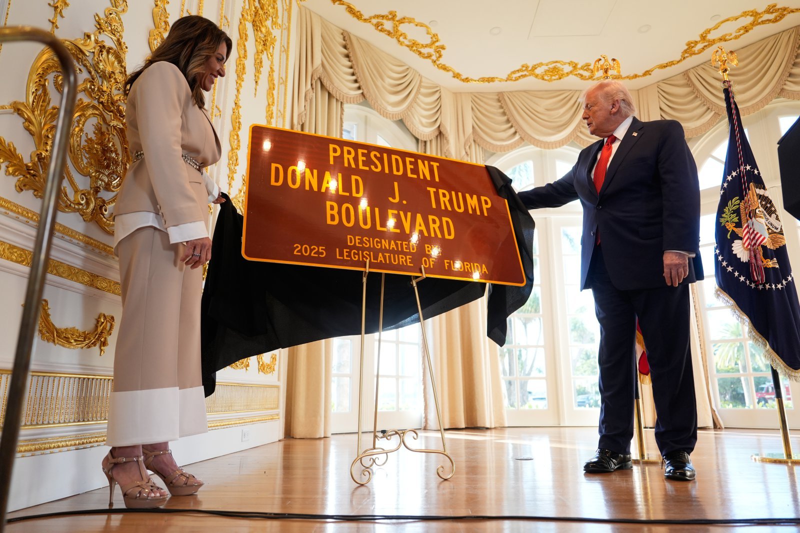 트럼프 대통령은 16일(현지시간) 마러라고 리조트에서 열린 도로 개명식에 참석했다. 그는“밤에 아름답게 불을 밝힌 ‘트럼프 불러바드’라는 표지판을 보면 자부심으로 가득 찰 것”이라며 “우리나라는 더 강해지고 부유하고 성공적이 될 것”이라고 주장했다. 자신이 언급하는 자부심은 대통령 개인에 대한 것이 아니라 미국과 플로리다주에 대한 자부심이라고 설명했다.