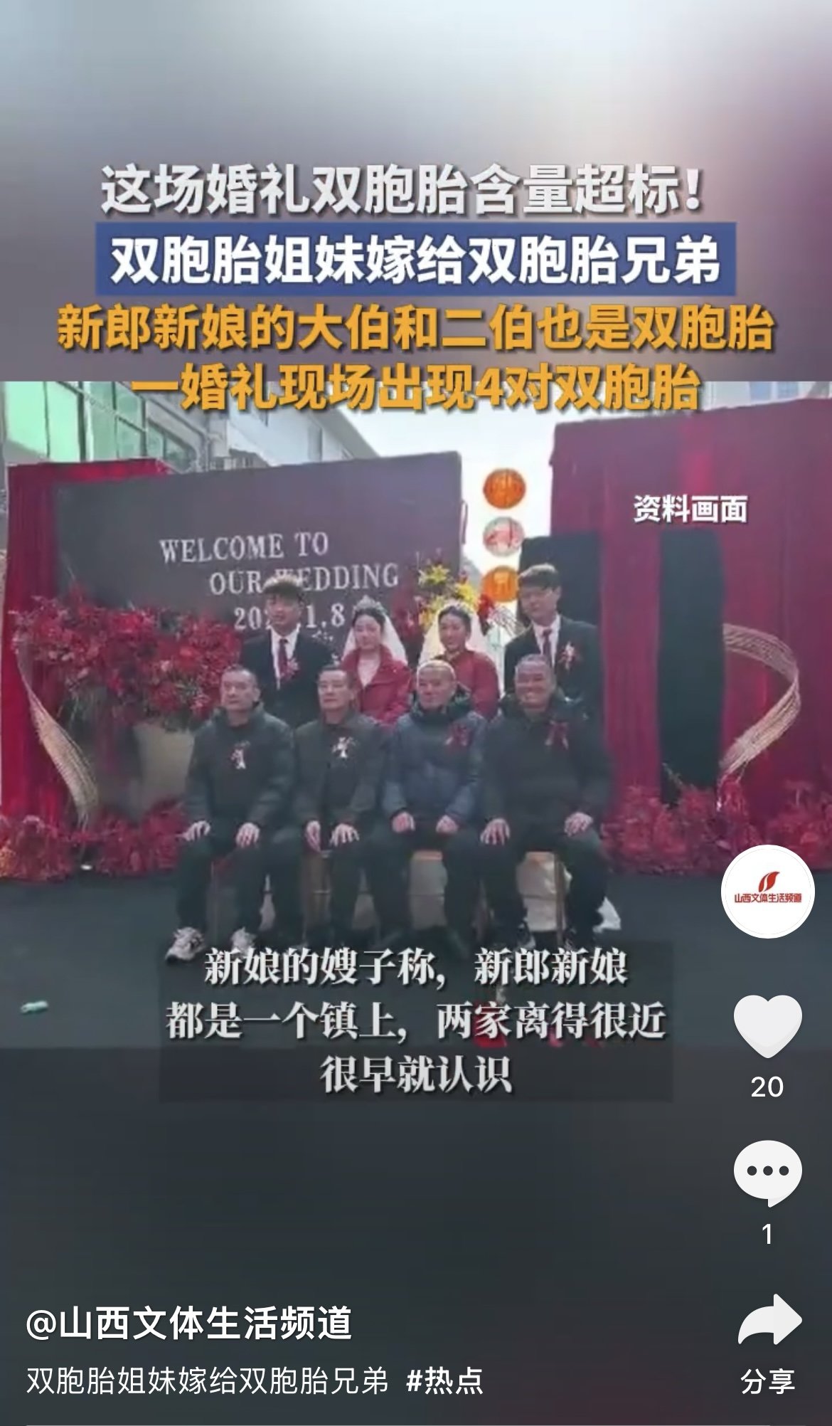 결혼식 당일 두 부부는 서로의 삼촌들 역시 쌍둥이라는 사실을 알게 됐다. 사회자는 이를 ‘기적’이라고 표현했으며, 쌍둥이 네 쌍이 함께한 결혼식 사진은 온라인에서 1000만회가 넘는 조회수를 기록했다.