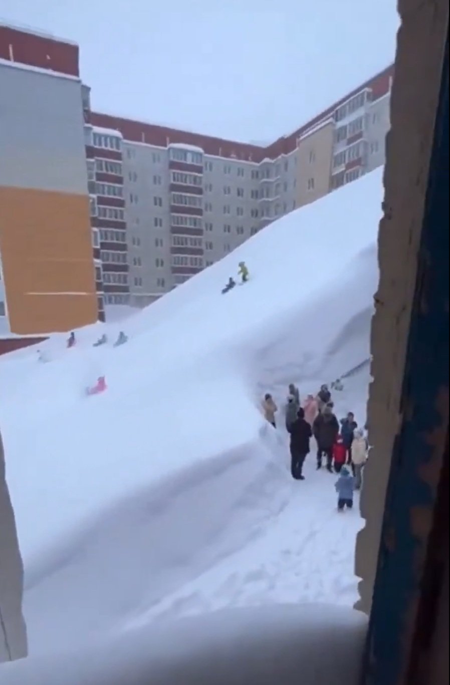 러시아 극동 캄차카 반도에 폭설이 덮친 모습. X캡처 SNS에서는 폭설 현장을 담은 사진과 영상이 빠르게 퍼져 나가고 있다. 아파트 10층 높이까지 쌓인 눈비탈을 미끄럼틀 삼아 아이들이 썰매를 타는 모습, 아파트가 눈 속에 파 묻힌 모습 등이다.