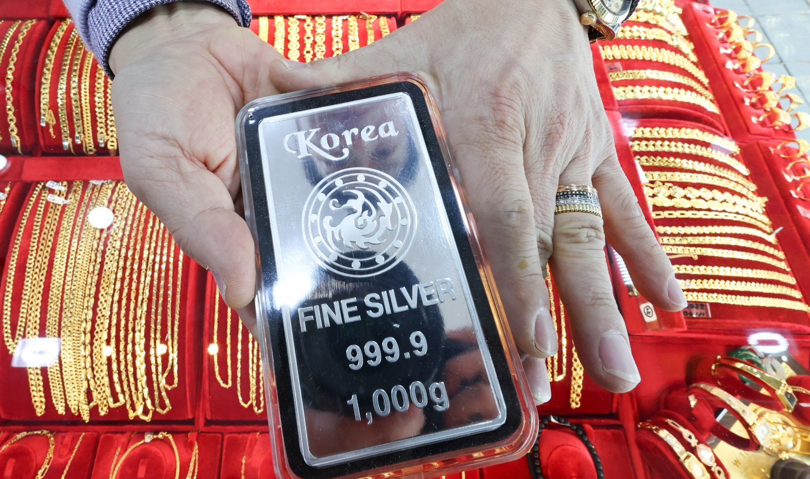 금·은 가격이 연일 고공행진하는 23일 서울 종로구 한 금은방에서 직원이 실버바를 정리하고 있다. 14시 24분 기준 현물기준 금 국제 시세는 온스당 4천958.29달러, 은 시세는 98.67달러를 기록중이다. 2026.1.23 뉴스1