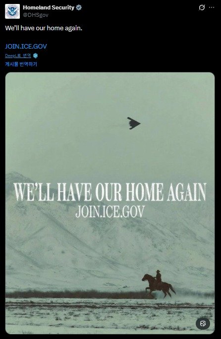 미국 국토안보부가 엑스(X)에 올린 이민세관단속국(ICE) 직원 채용 홍보물. (사진=국토안보부 엑스 갈무리)
