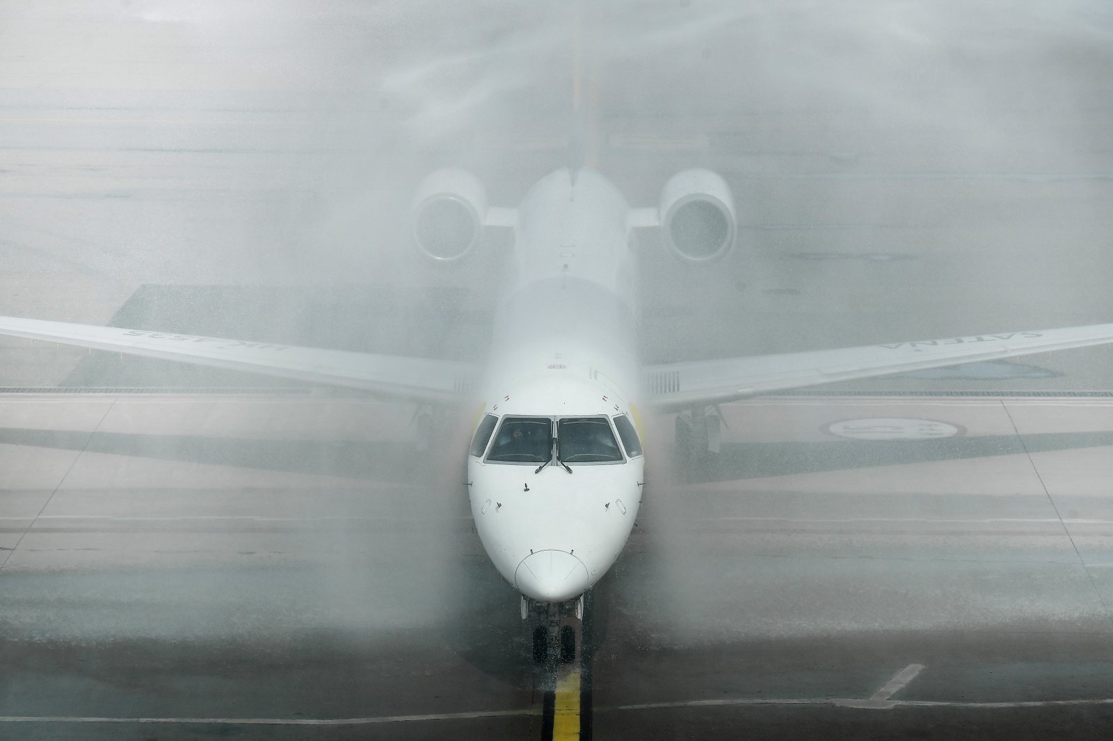 콜롬비아 보고타에서 출발한 사테나 항공 여객기가 2022년 11월 9일 베네수엘라 라과이라의 시몬 볼리바르 국제공항에 도착해 운항 재개 축하 물대포를 맞고 있는 광경. 콜롬비아에서는 1월 28일 15명이 탑승한 국내선 여객기가 실종되었고 기체 잔해만 북동부 지역에서 발견되었다고 사테나 항공사가 발표했다. 2026.01.29 라과이라=AP 뉴시스