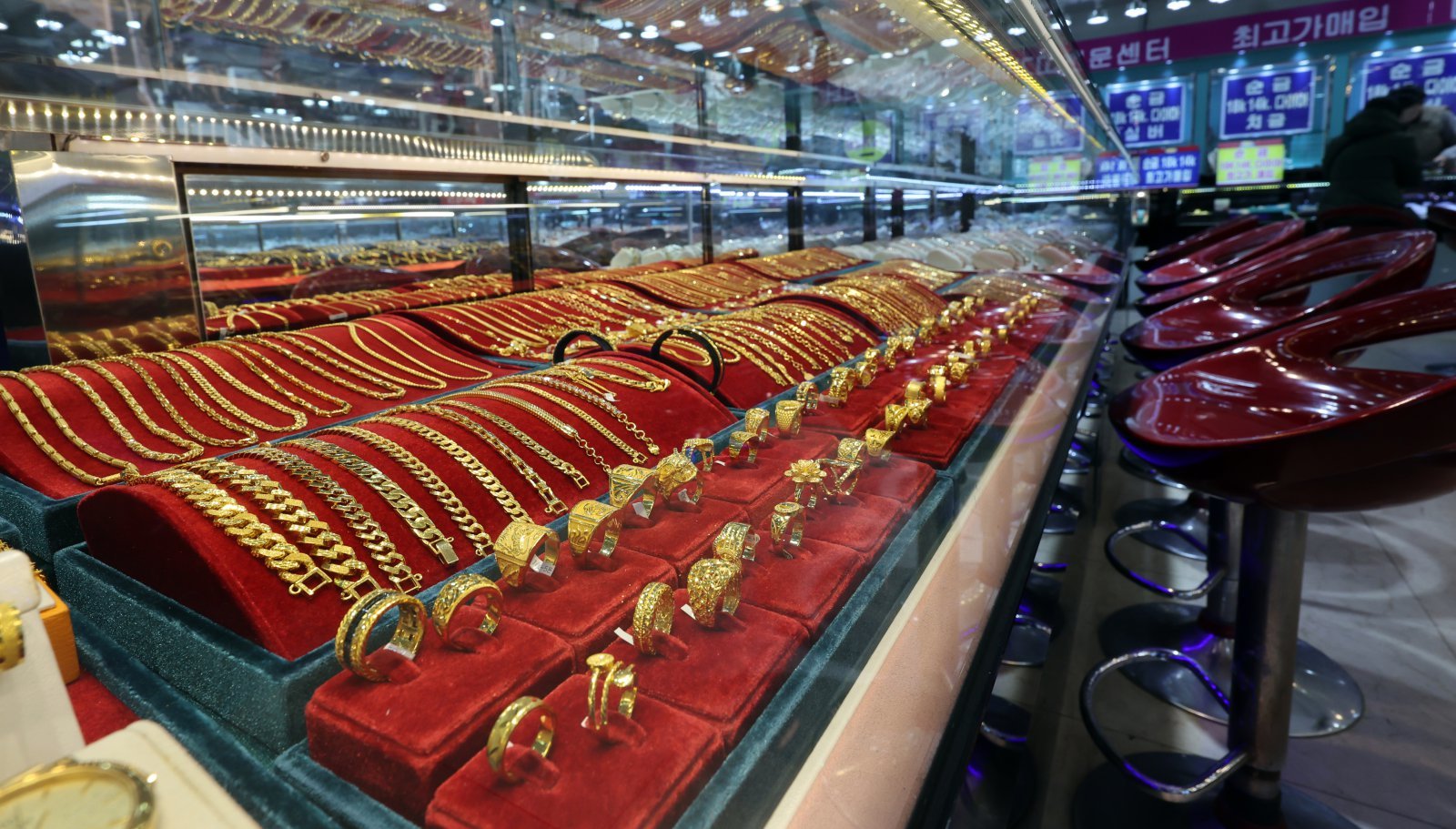 국제 금값이 5500달러를 돌파하는 등 금, 은시세가 급등하고 있는 28일 서울 종로구 귀금속 상가에 금과 은 제품 등이 진열돼 있다. 2026.1.28/뉴스1