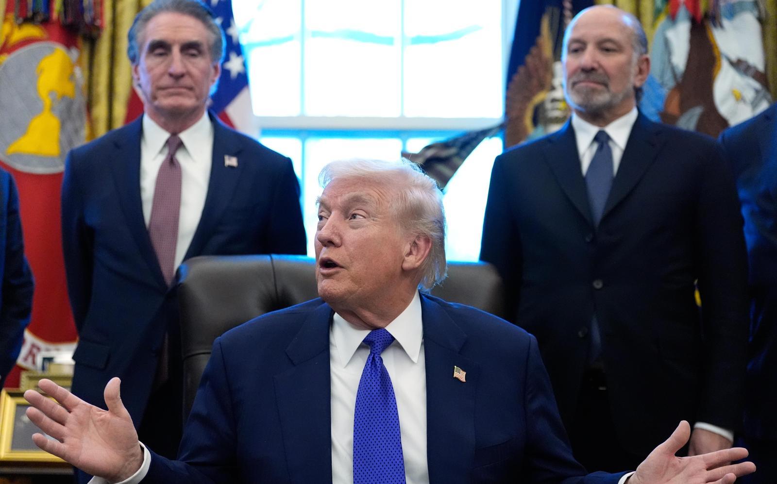도널드 트럼프 미국 대통령(가운데)이 2일(현지 시간) 워싱턴 백악관에서 중국의 ‘희토류 무기화’에 맞서 핵심 광물의 공급망 안정성을 확보하기 위한 ‘프로젝트 볼트’ 사업을 시작하겠다고 밝혔다. 120억 달러(약 17조4200억 원)의 초기 사업 자금은 민관 합동으로 조달하겠다고 덧붙였다.