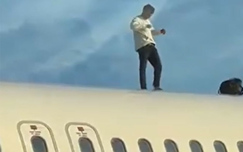 공개된 영상을 보면, 이 남성은 여객기 위에 올라가 지상에 있는 공항 직원들을 향해 조롱을 하는 듯한 모습을 보였다. 또 음료를 마신 뒤 바닥에 뱉고 캔을 던지는가 하면, 기체 위를 두 차례 전력 질주하기도 했다.