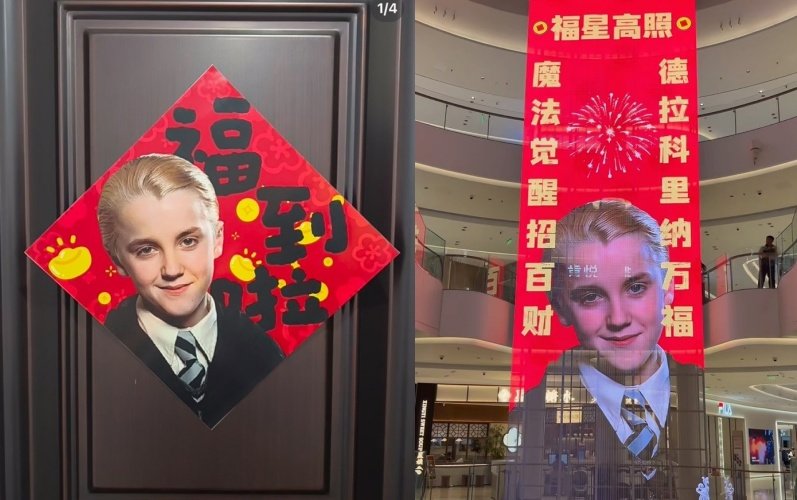 중국에서는 명절을 앞두고 집 문이나 실내에 길한 문구를 적어 붙이거나, ‘복(福)’ 자가 새겨진 붉은 장식물을 거꾸로 거는 풍습이 있다. 이러한 풍습과 맞물려 말포이가 특유의 미소를 짓고 있는 이미지를 활용한 제품들이 잇따라 등장하며 눈길을 끌고 있다.