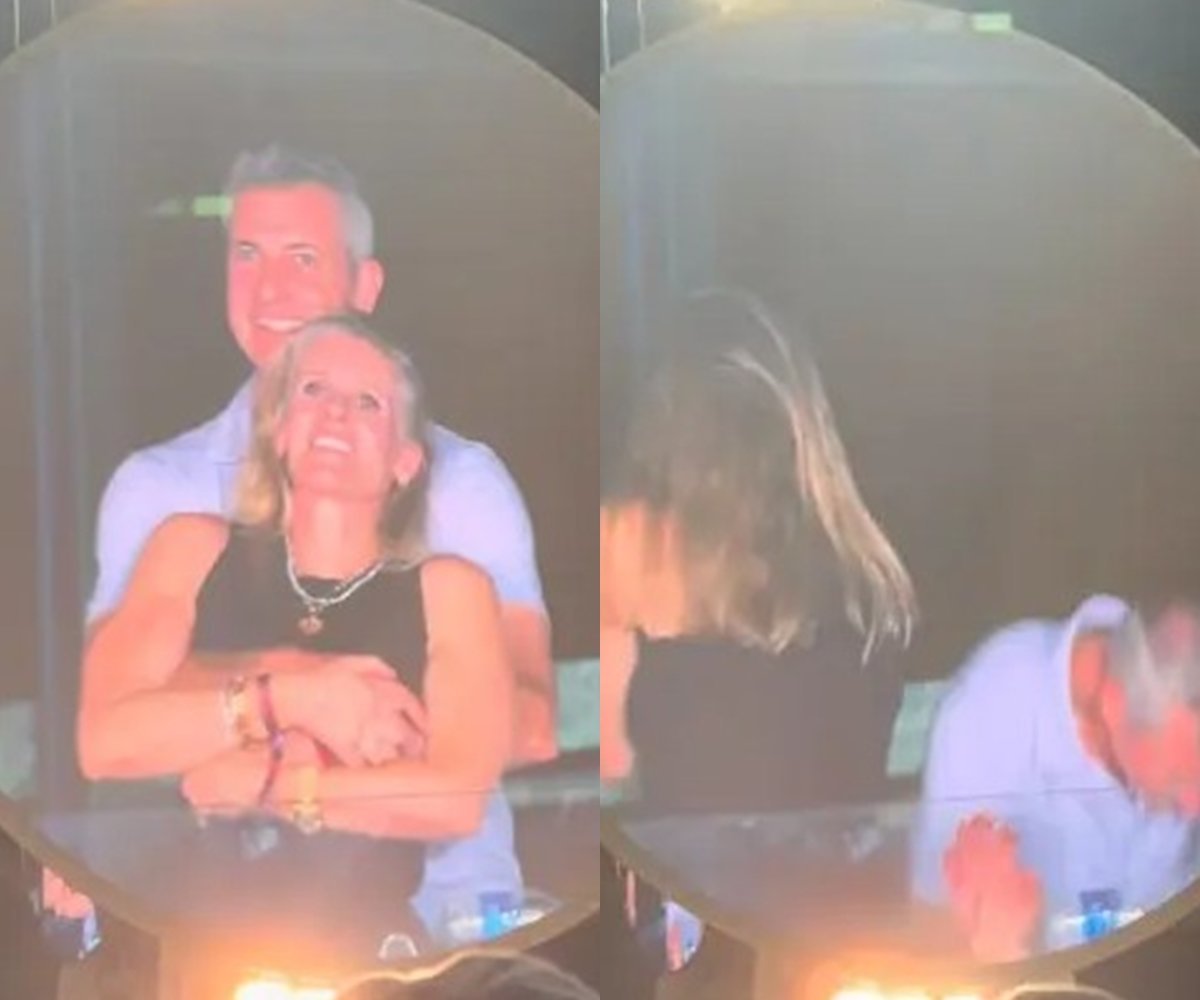 지난해 7월 콜드플레이 콘서트장에서 미국 테크기업 ‘애스트로노머’의 최고경영자였던 앤디 바이런과 같은 회사 최고인사책임자였던 크리스틴 캐벗이 포옹하는 모습. 엑스(X·옛 트위터) 캡처