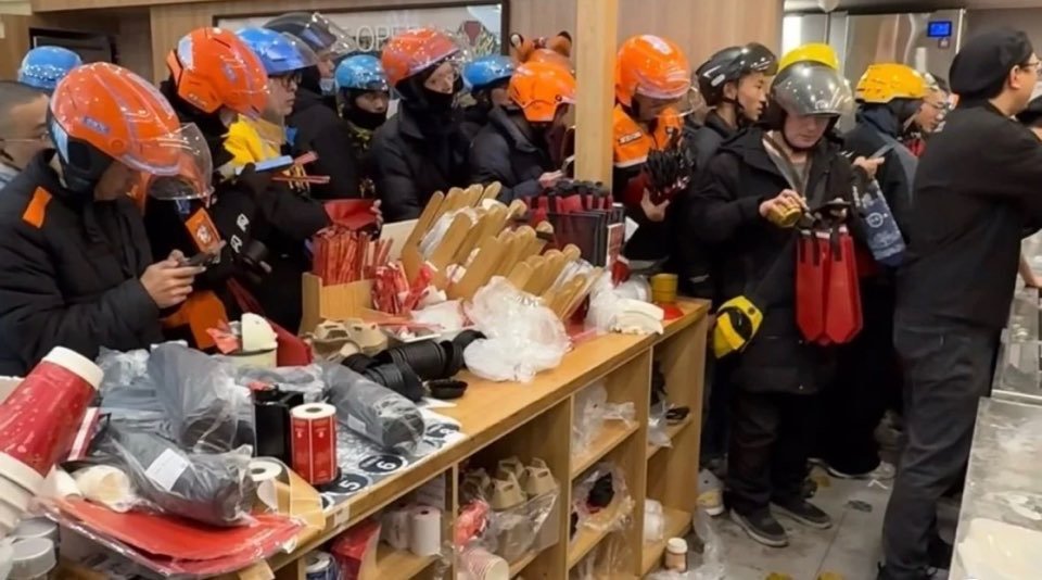 공개된 현장 영상을 보면 한 밀크티 매장에는 배달 기사들이 줄을 서서 휴대전화 등을 바라보며 고객에게 전달할 밀크티를 기다렸다.