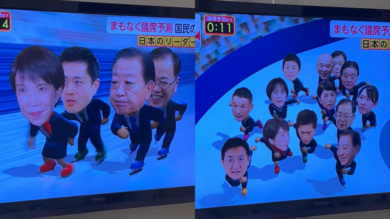 8일 치러진 일본 제50회 중의원 선거에서 다카이치 사나에 총리가 이끄는 자민당은 단독 과반인 316석을 확보했다. 이날 한 방송사는 스피드스케이팅 경기 콘셉트로 후보 캐릭터들이 경쟁하는 장면을 선보여 온라인에서 화제가 됐다.