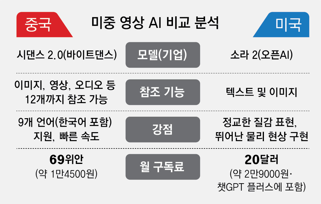 미국과 중국 간 치열한 인공지능(AI) 개발 전쟁이 이미지 AI까지 확전됐다. 지금까지는 구글의 ‘나노바나나’, 오픈AI의 ‘소라’가 이미지 AI 시장을 꽉 잡고 있었지만 최근 중국 빅테크들의 이미지 AI가 퀀텀점프에 성공하며 빠르게 이들을 추격하고 있다. 챗GPT, 딥시크와 같은 거대언어모델(LLM), 즉 ‘말’에 집중하던 미중 AI 개발 경쟁이 이제 이미지 전쟁으로 확전되는 양상이다. ● 中 딥시크 이어 ‘시댄스’ 쇼크 오나