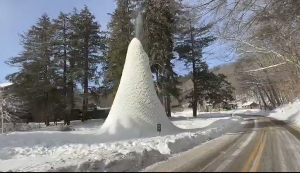 올해는 특히 강추위가 이어지면서 얼음 구조물의 크기도 기록적인 수준으로 커졌다. 지난 9일 기준 해당 얼음 화산의 높이는 약 9m에 달하는 것으로 전해졌다.