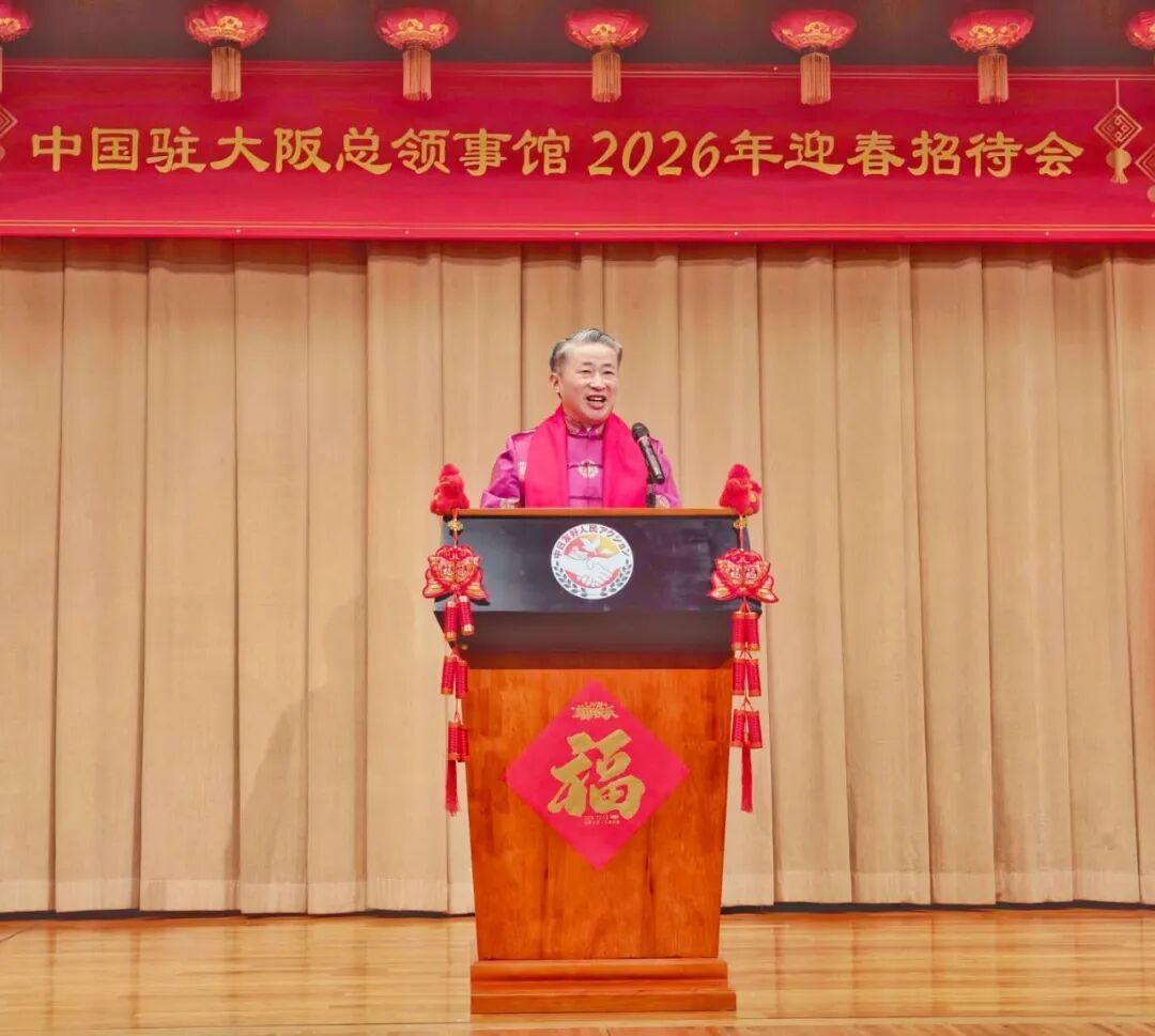 쉐젠 일본 오사카 주재 중국 총영사가 10일 개최한 신춘 리셉션에서 발언을 하고 있다. (주오사카 중국 총영사관 공식 계정)