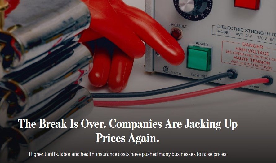 그동안 다른 부분에서 비용을 절감하던 것이 한계에 부딪히자 드디어 관세로 인한 가격 인상분을 소비자에게 전가하기 시작했다고 WSJ은 분석했다. 이에 따라 인플레이션이 상승할 가능성이 커졌다고 WSJ은 덧붙였다.