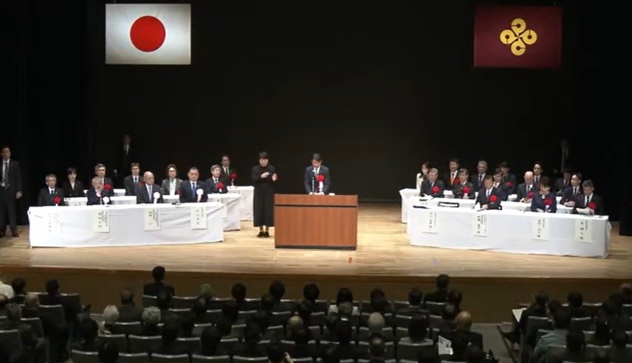 22일 일본 시마네현 마쓰에 시마네현민회관에서 열린 ‘다케시마의 날’ 행사. (사진=TSK 뉴스 유튜브 갈무리)