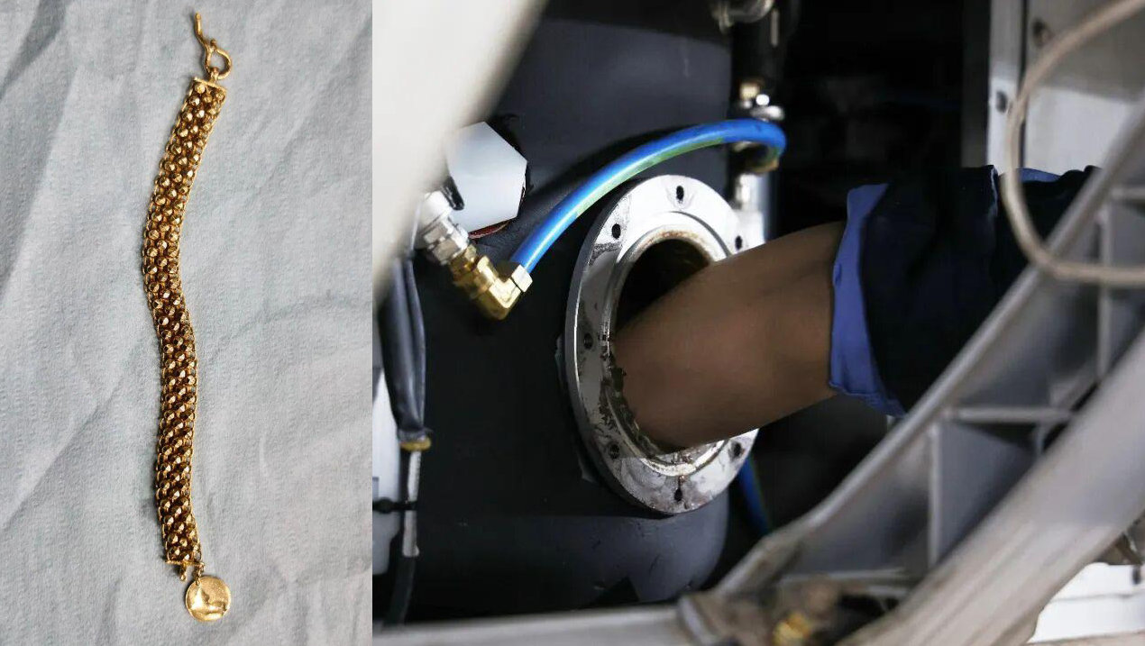 오물통 입구는 좁고 어두워 도구나 손전등을 쓰기도 마땅치 않았기에 정비사들은 구멍 안으로 직접 손을 넣는 방법을 택했다. 그렇게 오물통을 샅샅이 뒤진지 40분만에 정비사들은 마침내 팔찌를 찾아 꺼냈다.