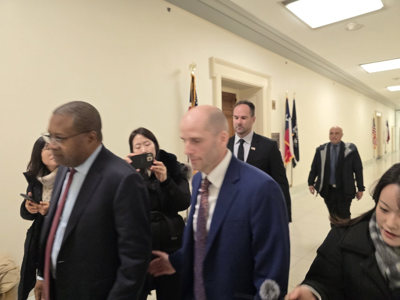 해롤드 로저스 한국 쿠팡 임시대표가 23일(현지시간) 미국 워싱턴DC 연방 의회 의사당에 위치한 레이번 빌딩 하원 법사위 회의장에 증언하기 위해 들어서고 있다. 2026.02.23. ⓒ 뉴스1